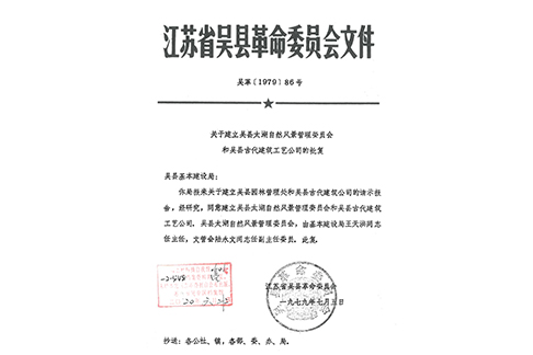 1079年7月5日 关于建立吴县古代建筑工艺公司的批复